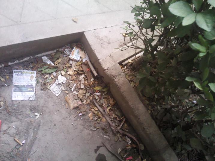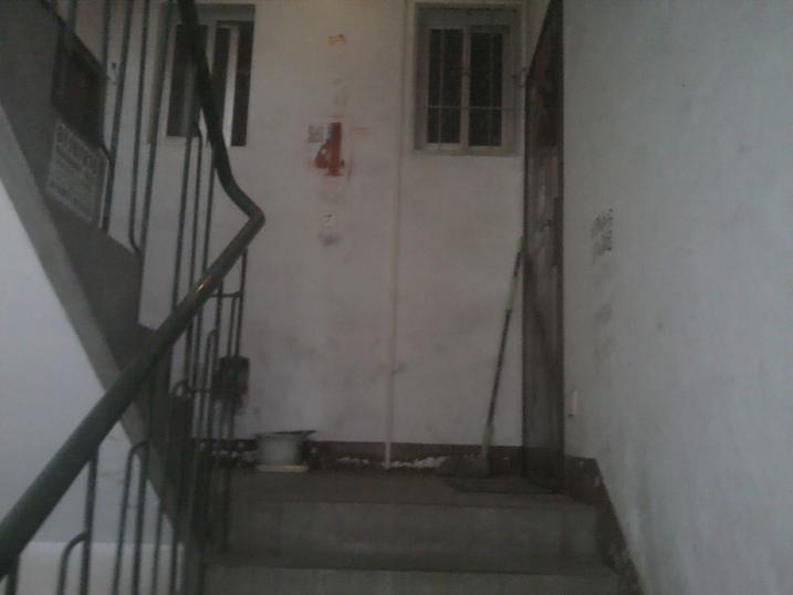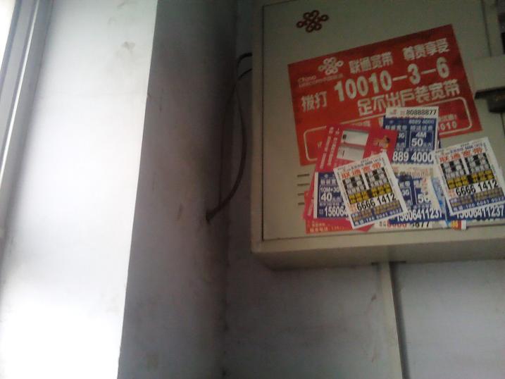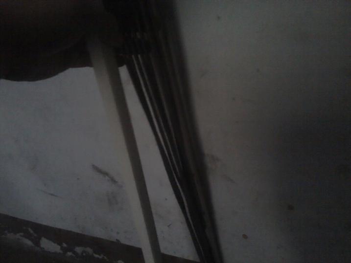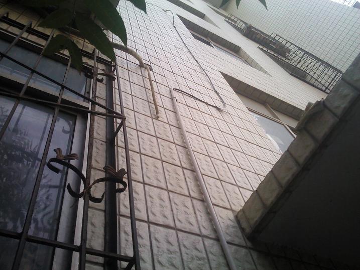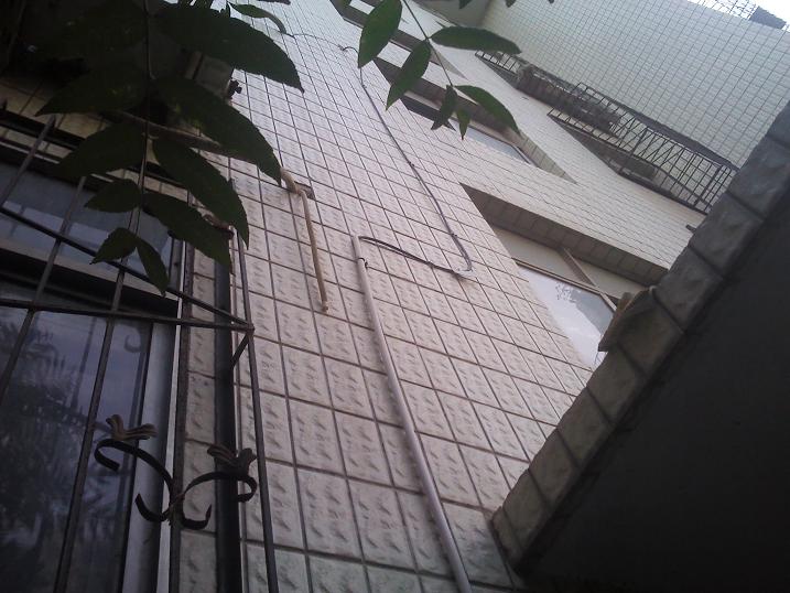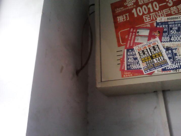 4楼的图,白色的管为走线管,通过楼梯与楼梯传上去的,估计建楼时还没10M的概念。