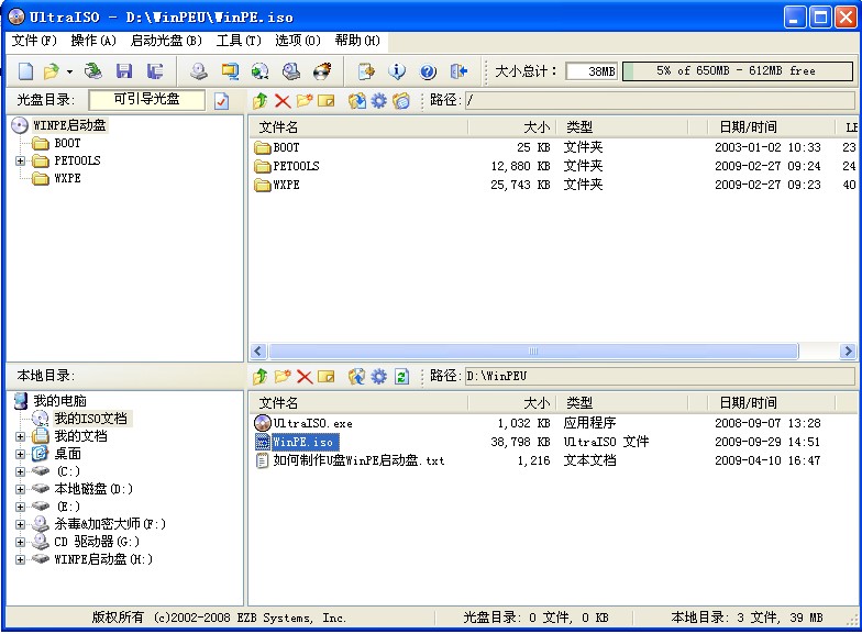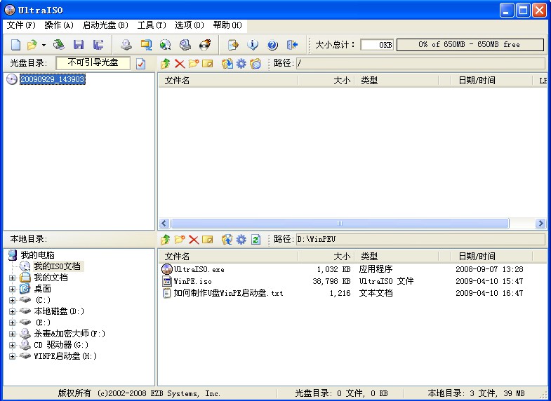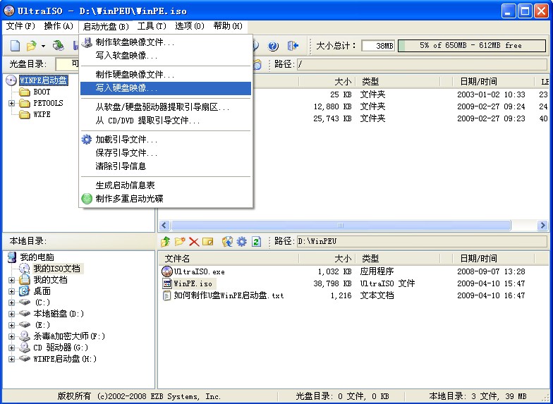 这里制作WinPE启动盘的工具,推荐的是UltraISO 9.3,制作非常方便与简单,几秒钟即可制作完成。而有些版本的制作方法,则麻烦得多。