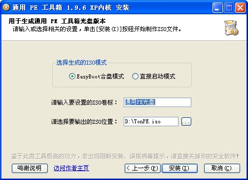 该软件就是网络上广泛流传的“通用PE工具箱”,也就是本博文“WinPE启动U盘工具箱”的原始软件。该软件为.exe可执行文件,提供把WinPE安装到硬盘、安装到U盘、生成ISO文件三种选择方案供大家使用,让制作更加灵活。有兴趣的朋友,可以尝试尝试。