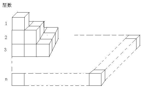 如图2,这堆”积木”是由1*1*1的小立方体搭起来的.从上往下数,它的第一层有1块小立方体,第二层有2^2块,第三曾有3^2块……第n层有n^2块.