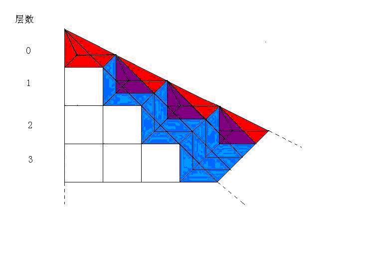 每条宽度均为1。从上向下数第i条长度=1+2+3+…+i=i(i+1)/2=(i2+i)/2